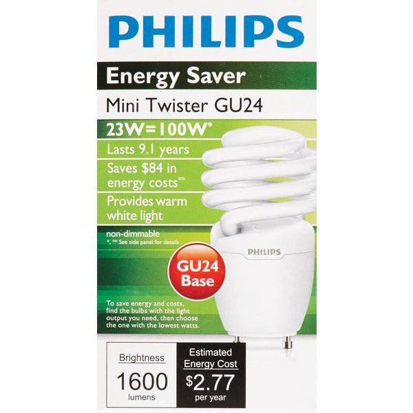 - Philips Energy Saver 100W Equivalent Warm White GU24 Base Spiral CFL Light Bulb