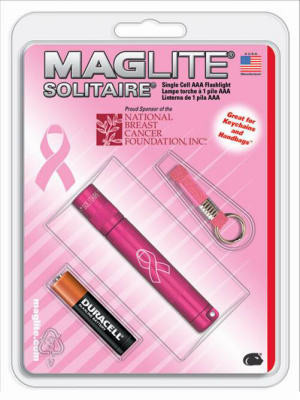 Pink, National Breast Cancer Foundation Maglite, 2 Lumens, With 3 Hour 45 Minute Run Time, 1 "AAA" Cell Solitaire Flashlight With The NBCF Ribbon Logo Laser Engraved, New & Unique Pink Blister Card, Packaging Includes 1 Pink Laser Engraved Maglite Solitaire Flashlight, 1 "AAA" Battery & A Pink Key Lead Lanyard, Package Shows The NBCF Logo. vendor ID: 36350 Price/Unit: 9.99EA model: K3AMW6