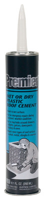 Premier, 11 OZ, Plastic Black, Wet Or Dry Roof Cement, Cartridge Used As A Sealer & To Stop Leaks Around Skylights, Vent Pipes, Chimneys, Valleys & Foundation Joints, Repairs Cracks, Seams & Small Holes In Roofing Materials Up To 1/4" Wide. vendor ID: 38067 Price/Unit: 3.79EA model: PR350004