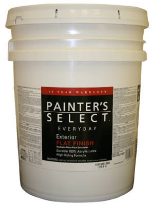 JEF-9, Painter's Select Everyday, 5 Gallon, White, Exterior Flat Latex House Paint, Durable Acrylic Flat Finish, High Hiding Coverage, Resistant To Mildew & Fading, Easy Soap & Water Clean Up, 15 Year Warranty, VOC Less Than 50 Grams Per Litre. vendor ID: 51896 Price/Unit: 110.00EA model: JEF9-5G