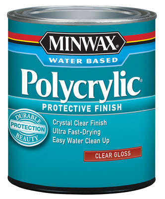 QT, Clear, Gloss, Polycrylic Protective Finish, Hard Crystal Clear, Ultra Fast Drying Protective Finish, Has Very Little Odor & Cleans Up With Water, Great Clarity Makes It Perfect For Use Over Light Woods & Minwax Water Based Wood Stains. vendor ID: 38422 Price/Unit: 19.99EA model: 65555