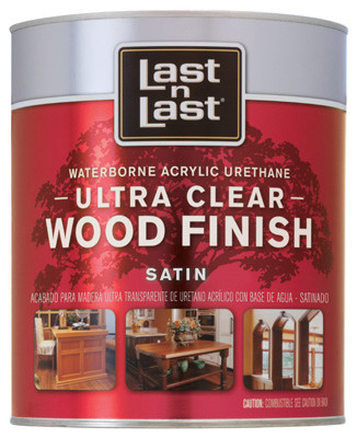 QT, Clear Satin Waterborne, Water Based Wood Finish, Performance Of Lacquer In A Water Based Acrylic Formula, Dries In 30 Minutes, Non Yellowing, Superior Durability, Great For Furniture, Cabinets, Woodwork, Antiques, Crafts & More, Environmentally Friendly, Low Odor, Soap & Water Clean Up, VOC Compliant. vendor ID: 29561 Price/Unit: 15.99EA model: DFT109/04