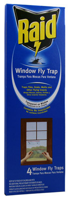 Raid, 4 Pack, Window Fly Trap, Catches Over 100 Flies Per Trap, Transparent Design, No Vapors, No Broadcast Insecticides. vendor ID: 81539 Price/Unit: 3.99EA model: FTRP-RAID