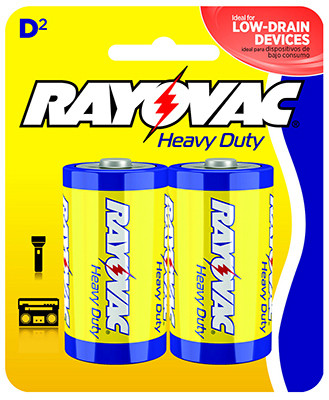 Rayovac, 2 Pack, "D", Heavy Duty Battery, Solution For Low Drain Or Seldom Used Devices Like Smoke Detectors, Radios, Clocks, Remote Controls, & Flashlights. vendor ID: 36442 Price/Unit: 1.49EA model: 6D-2BF