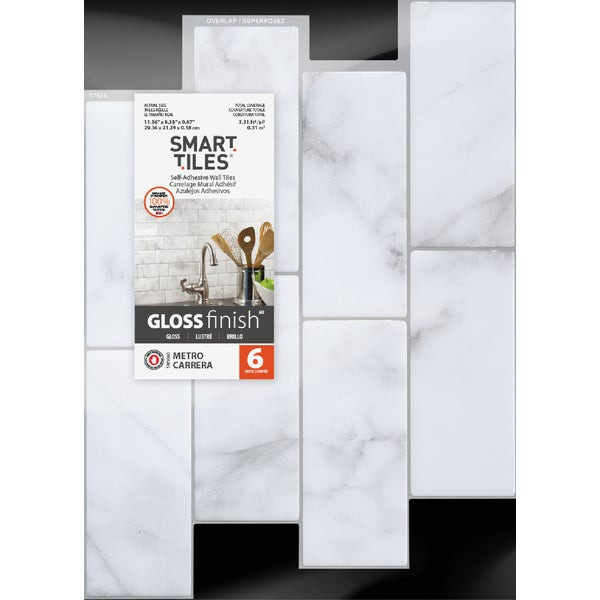 Smart Tiles Approx. 9 In. x 11 In. Glass-Like Vinyl Backsplash Peel & Stick Metro Carrera Subway Tile (6-Pack)