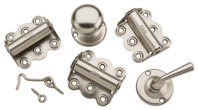 V1771, Satin Nickel, Screen Door Kit With Screws, Includes: 3 Spring Hinges, 1 Door Pull, 1 Door Knob, 1 Hook & Eye Latch, Mounting Screws, Designed For Full Surface Applications. vendor ID: 36939 Price/Unit: 15.99EA model: N100-013
