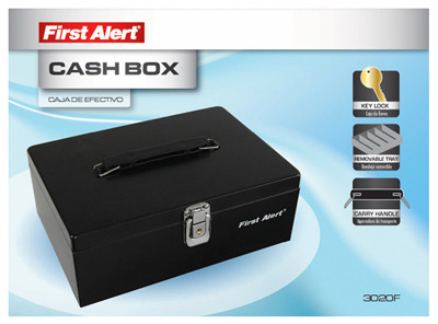 First Alert, 4" x 10.88" x 7.5", Steel, Locking Cash Box, Multi-Purpose, Can Be Used To Store Cash Or Other Valuables, Includes A Removable 7 Compartment Cash Tray & Convenient Carry Handle For Portability, Constructed Of Durable Powder Coated Steel, Interior Dimensions: 4"H x 10.88"W x 7.5"D. vendor ID: 36996 Price/Unit: 14.99EA model: 3020F