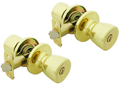 Tru Guard, 2 Pack, Polished Brass Finish, Entry Lockset, Medium Tulip Style Knob For Exterior Door, 5 Pin Solid Brass Cylinder, Steel Adjustable Backset 2-3/8" Or 2-3/4", 2 Keys Provided, Round & Square Corner Faceplates Included. vendor ID: 55939 Price/Unit: 19.99EA model: TS700D
