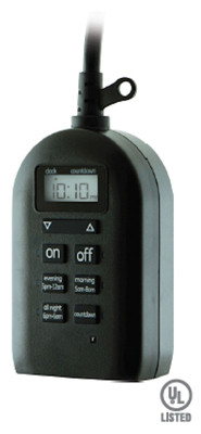 TouchSmart, Plug In, Outdoor Digital Timer, 6 Preset Buttons, Compact Fluorescent Light & LED Compatible, 2 Grounded Outlets, Weather-Resistant. vendor ID: 17434 Price/Unit: 29.99EA model: 26898-P2