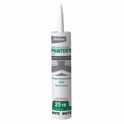 True Value, 10.1 OZ, White, Painter's Acrylic Latex Caulk, Multi-Purpose Caulk Designed For The Special Needs Of Painters, Interior/Exterior Use, Adheres To Wood, Plaster, Drywall & Masonry, Paintable, Water Clean Up, 25 Year Durability, Meets ASTM C 834. vendor ID: 29520 Price/Unit: 1.39EA model: 08733