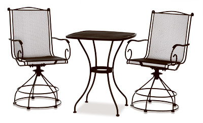 Uptown, 3 Piece, Black, Steel Balcony Set, Textured Black Powder Coated Finish. Mesh Style Table Top & Chair Backs, Comes With 2 Motion Balcony Chairs & 1 Balcony Table, Balcony Table Measures 28" Square Round & Is 33" Tall, Motion Balcony Chairs Seat Dimensions Are 19.3"W x 18.11"D & 42.1"H, 250 LB Weight Capacity. vendor ID: 4532 Price/Unit: 279.00EA model: RXTV-08BCT