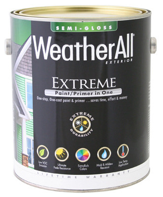 WAESGP, True Value, Premium Weatherall Extreme, Paint/Primer In One, Gallon, Pastel Base, Exterior Semi-Gloss Paint, 100% Acrylic Latex, Low Temperature To 35 Degrees House Paint, VOC Less Than 50 Grams Per Litre, Lifetime Warranty. vendor ID: 51896 Price/Unit: 44.99EA model: WAESGP-GL