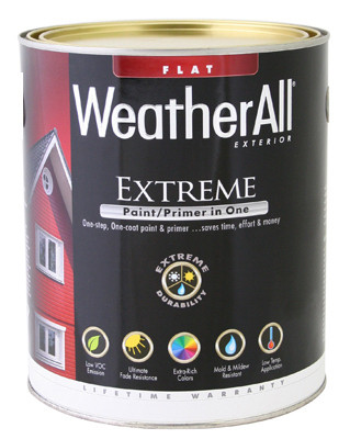 WAEFP, True Value, Premium Weatherall Extreme, Paint/Primer In One, QT, Pastel Base, Exterior Flat Paint, 100% Acrylic Latex, Low Temperature To 35 Degrees House Paint, VOC Less Than 50 Grams Per Litre, Lifetime Warranty. vendor ID: 51896 Price/Unit: 17.99EA model: WAEFP-QT