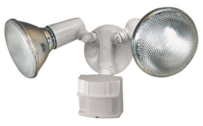 9.5"W x 5"D x 9.5"H, White, Motion Activated Security Flood Light, Adjustable Detection Sensitivity, 150 Degrees, Up To 70' Detection Range, Selectable Light Timer, Assorted Settings, Uses Two 120W Max PAR38 Halogen Flood Bulbs, Not Included, Energy Star, 10 Year Warranty. vendor ID: 94169 Price/Unit: 19.99EA model: HZ-5411-WH