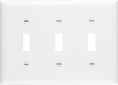 White, 3 Gang, 3 Toggle Openings, Nylon Wall Plate, UL, CSA, 3/16" Taller & Wider That Standard Size Wall Plate For Better Coverage, Molded Of Rugged Practically Indestructible Self Extinguishing Nylon, 6.563" x 4.6875", Cello Wrap. vendor ID: 17673 Price/Unit: 2.29EA model: TP3WCC12