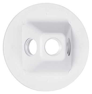 White, Bell Non-Metallic, Lamp Holder Cluster Cover, Round, Three 1/2" Outlets, Polycarbonate Construction, Weatherproof Protection For General Outdoor Lighting Applications In Wet, Damp Or Dry Locations, Installation Hardware & Gasket Included, UL Listed, Shrink-Wrap. vendor ID: 17079 Price/Unit: 3.99EA model: PLV330WH
