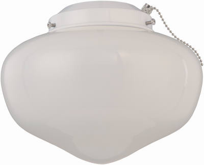 White Frosted, One Light Schoolhouse Ceiling Fan Light Kit, 9" Diameter Globe, 4" Diameter Fitter, Damp Location, Uses One 13W, T3, Standard Base Compact Fluorescent Light Twist Bulb, Included. Epact Compliant. vendor ID: 17269 Price/Unit: 14.99EA model: 7783800