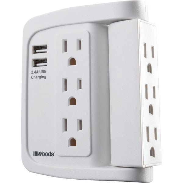 - Woods 2-USB/6-Standard Outlet 2.4A/15A White Swivel Surge Tap