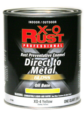 XO-4, Premium X-O Rust, QT, Safety Yellow, Interior/Exterior Gloss Oil Base, Anti Rust Enamel, VOC Less Than 400 Grams Per Litre. vendor ID: 51896 Price/Unit: 11.99EA model: XO4-QT